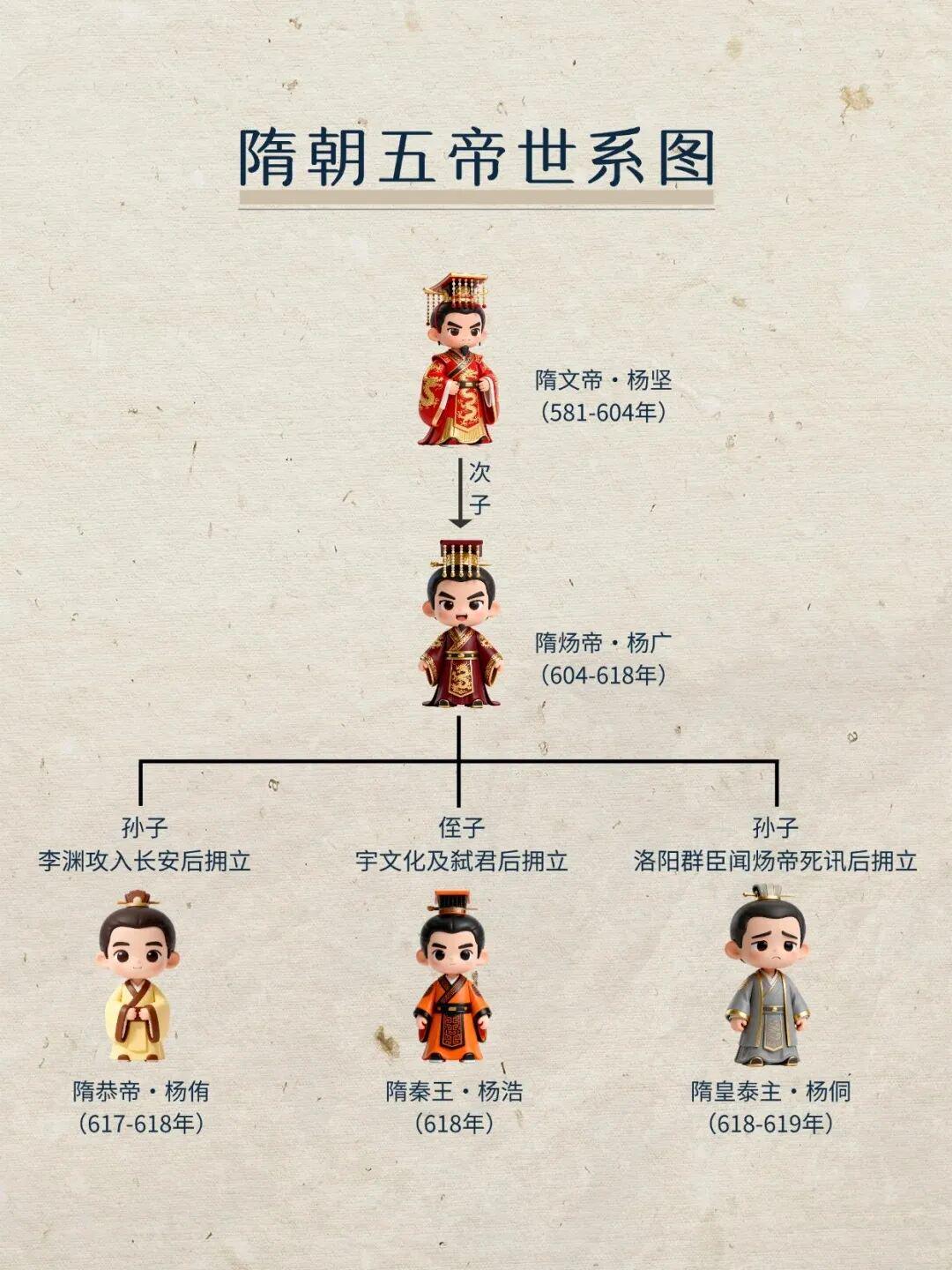 以下是隋朝五帝世系图,大家有什么补充的,欢迎评论区聊。