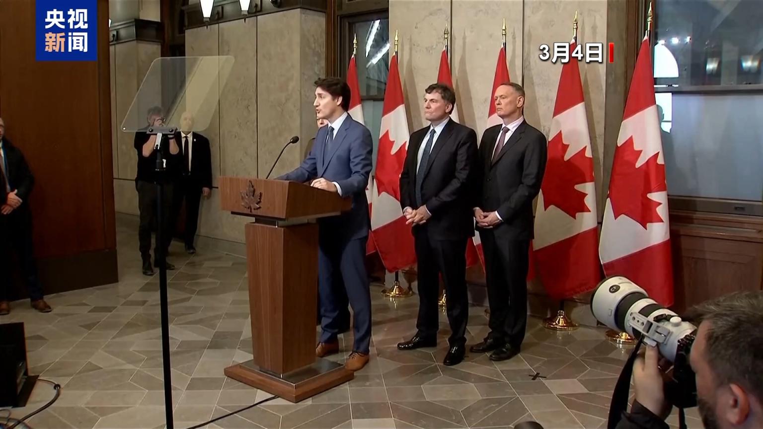 3月4日,美国对加拿大和墨西哥产品加征25%关税的措施生效。同一天,时任加拿大总理特鲁多宣布,对1550亿加元的美国商品征收25%的报复性关税,其中对300亿加元商品的关税立即生效。